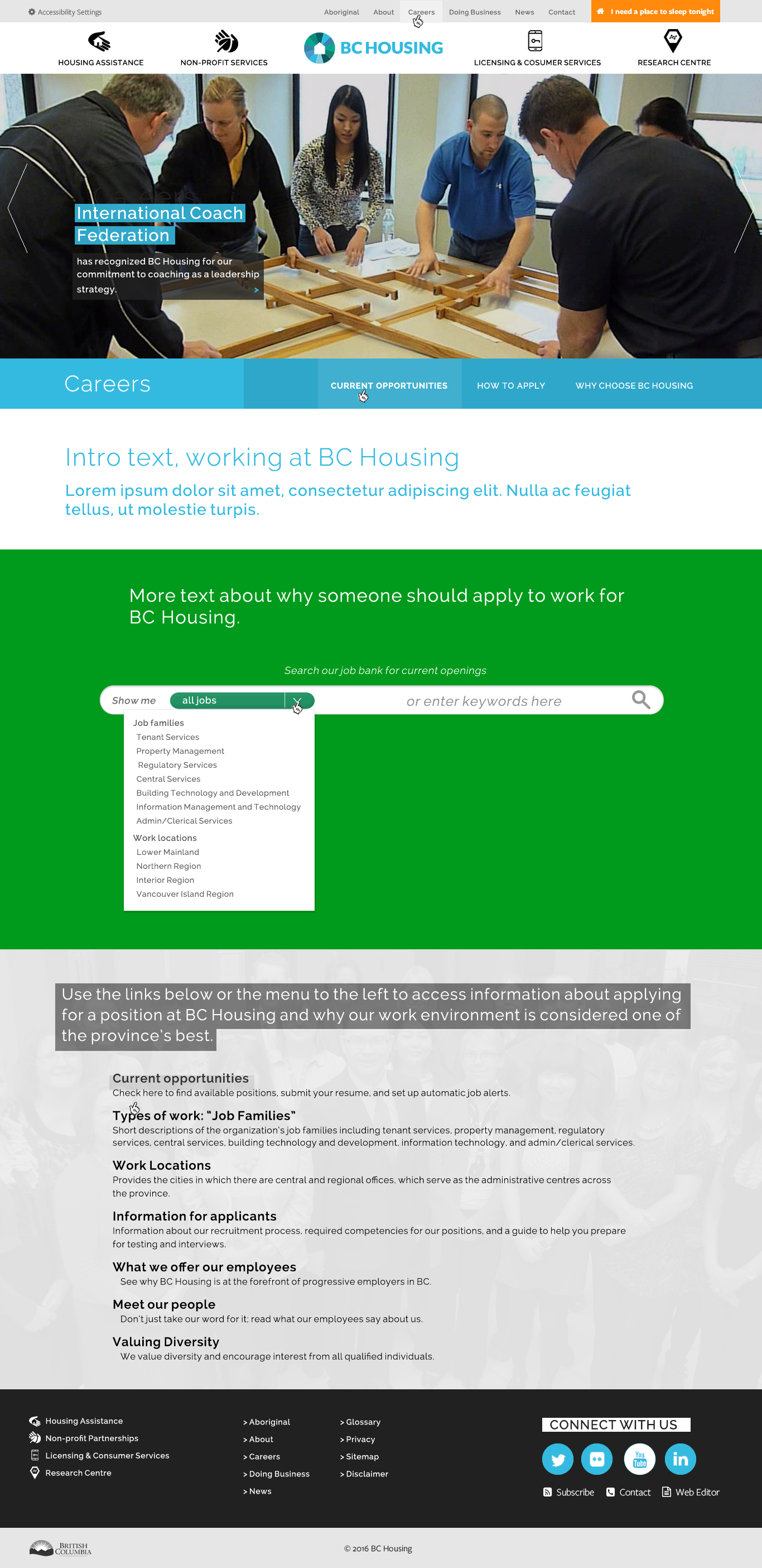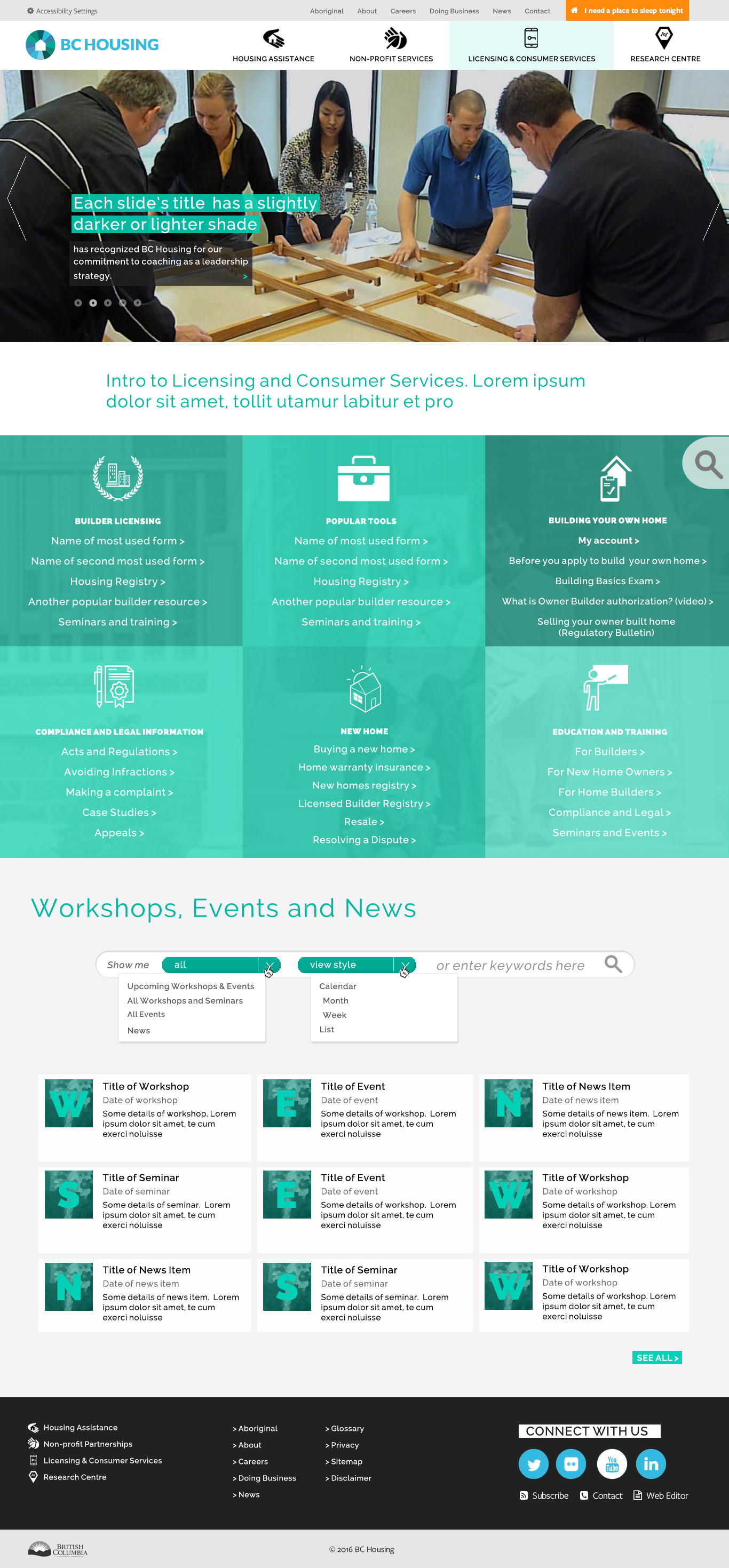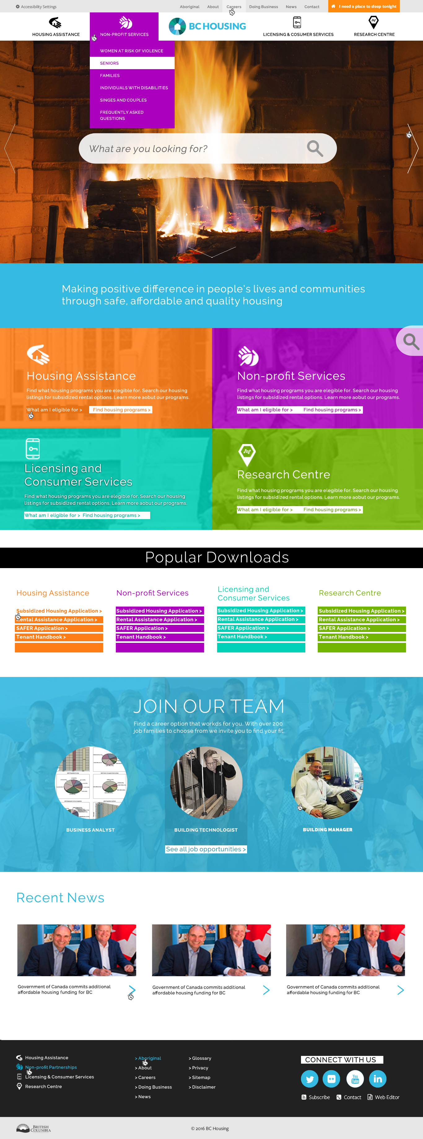 Worked with BC Housing on their site redesign to present their multitude of services in an engaging, clear and concise way.
