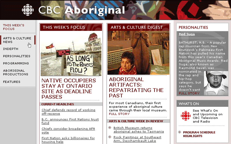 Design, content creation & curation & engineering for CBC's Aboriginal news site.