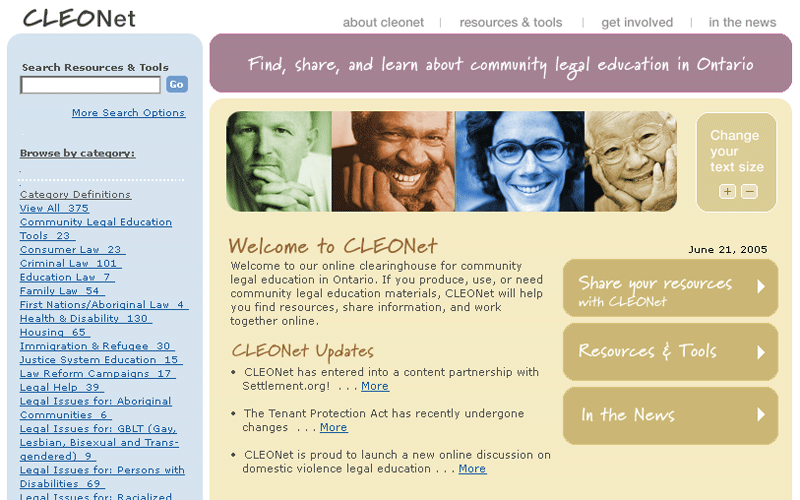 Design, content creation/writing & front-end development for Community Legal Education Ontario's "online clearinghouse for legal education."