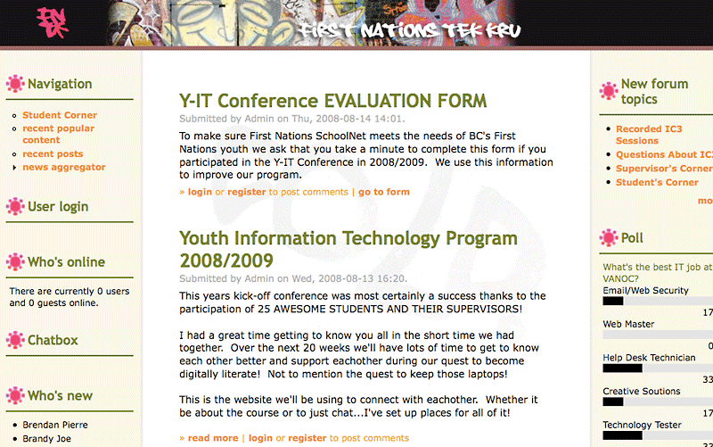 Logo & site design & front-end development for a First Nations youth technology club. Drupal.
