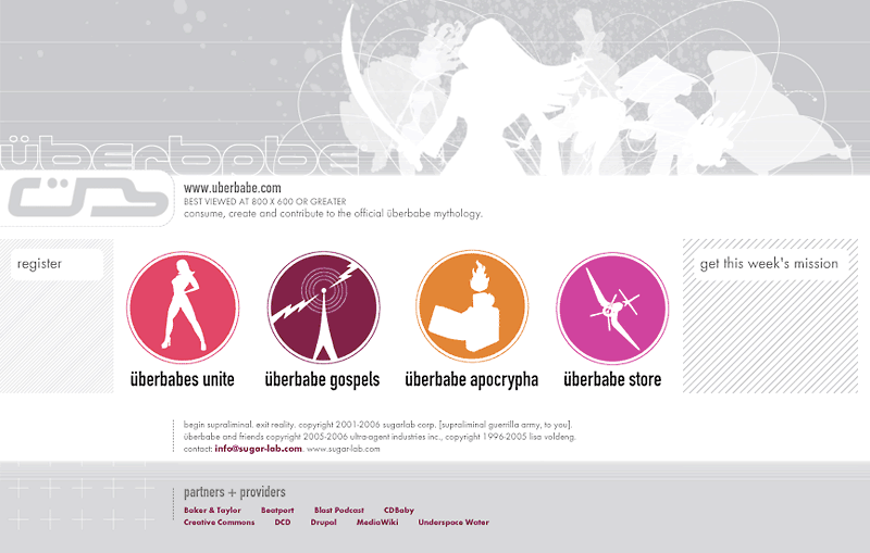 Design, front-end development, blogging & community development for a multi-media, user-directed graphic novel. Drupal. Also uses Mediawiki.